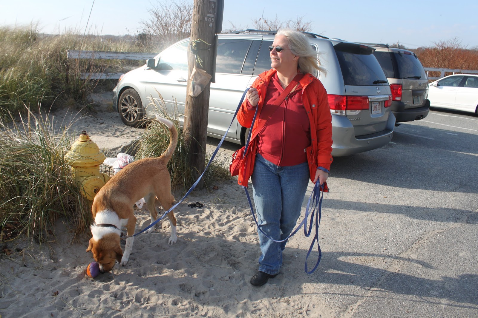 | Charlie Brown and yours truly having a morning walk on the beach. Hydrant and football optional. |